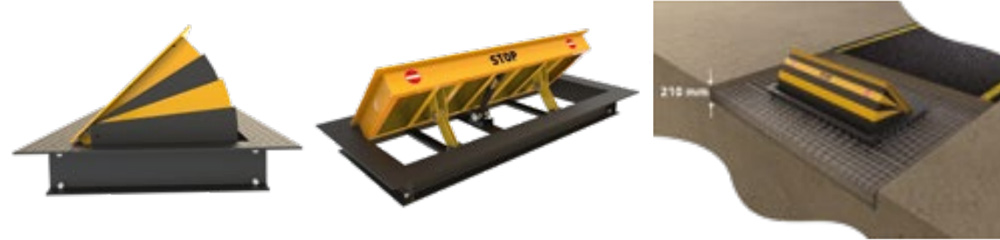 Блокиратор дорожный гидравлический серии TRB SHLW Traffic Regulation с двумя гидроцилиндрами, для поверхностного монтажа.