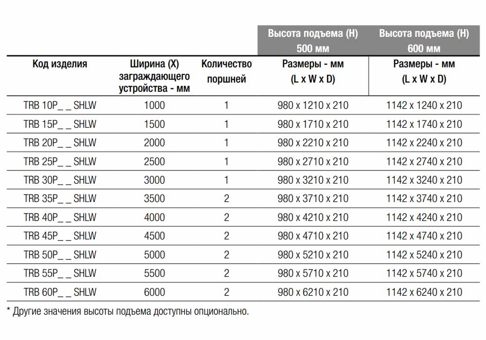 Телескопические лицевые панели, гидроаккумулятор для функции быстрого подъема EFO (однопоршневая или двухпоршневая системы), ручной насос для ручного подъема, электродвигатель 24 В пост. тока на случай сбоя электроснабжения (50 подъемов и 50 опусканий), подогреватель масла (для масляного резервуара), маслоохладитель, подогреватель для электронных компонентов, погружной насос, светодиодный светофор (диаметр 200/300 мм, красный/зеленый, корпус из нержавеющей стали марки 304 с электростатическим порошковым покрытием), светофорная опора (горячеоцинкованная сталь, электростатическое порошковое покрытие), шлейфовый детектор (с двойным контактом), предохранительные датчики (с опорами высотой 50 см), корпус IP67 (для ПЛК, импульсного источника питания, разъемов и прочих компонентов внутри силовой установки), беспроводной пульт дистанционного управления (приемник и передатчик), внешние кнопки, горячее цинкование, гидравлическая установка двойного действия, двухскоростная гидравлическая установка, ПЛК с диагностическим дисплеем, передние мигающие индикаторы, датчик уровня масла, рампа, другие размеры изделия.