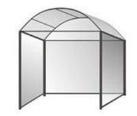 Металлический каркас, стены и крыша из поликарбоната.