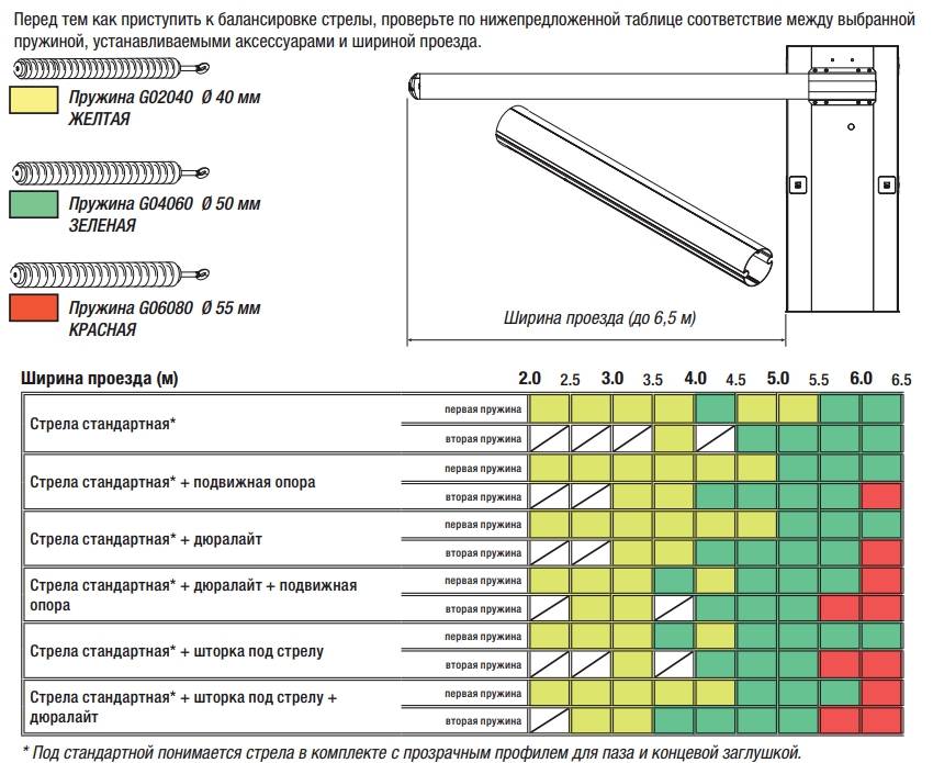 Для балансировки стрелы, подберите пружины в соответствии с длиной стрелы и установленными на ней аксессуарами: