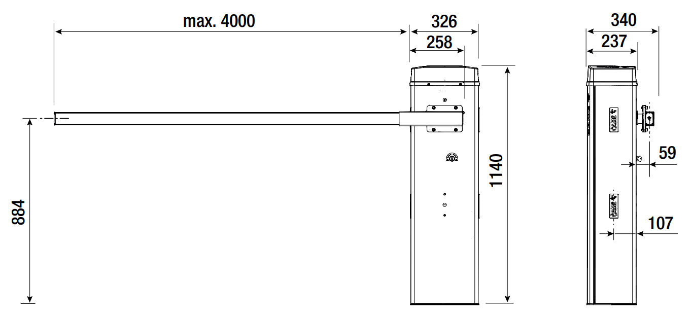 • 803BB-0370 GLT40AOS - Тумба шлагбаума из оцинкованной и окрашенной стали с возможностью установки дополнительных принадлежностей для проездов до 4 м, класс защиты IP54: 1 шт.