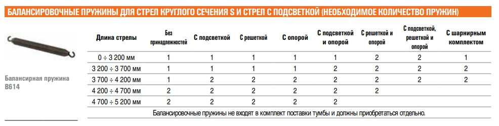 Необходимо использовать балансирующую пружину только производства FAAC. В зависимости от длины и конфигурации монтируемой стрелы устанавливается одинарная или двойная пружина в монтажные позиции.