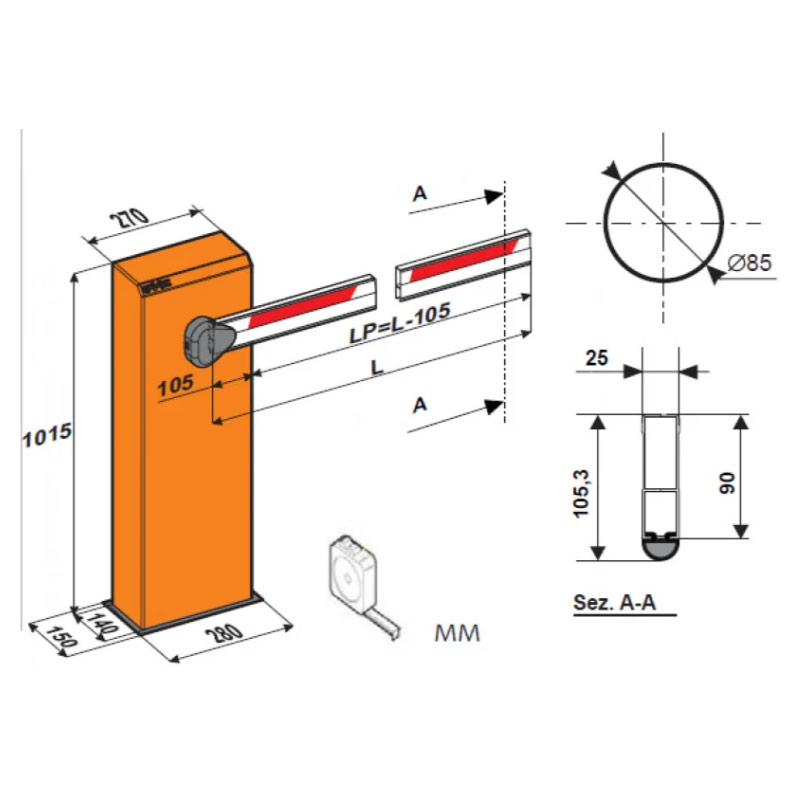 • Шлагбаум гидравлический 620 LH, левое расположение стрелы, встроенный 2-х канальных детектор индукционных петель, зимний, RAL2004, для стрел 25х90х3825÷4815мм и Ø75мм длиной до 5000мм: 1 шт.