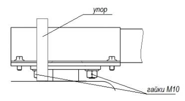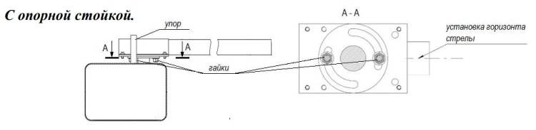 - Перевести стрелу в вертикальное положение без касания упора и затянуть гайки.
