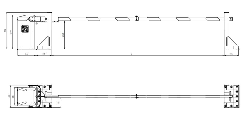 Стрела выполнена из стальной профильной трубы 120х60 мм с тросом внутри и со светоотражателями длиной 4,5 м.