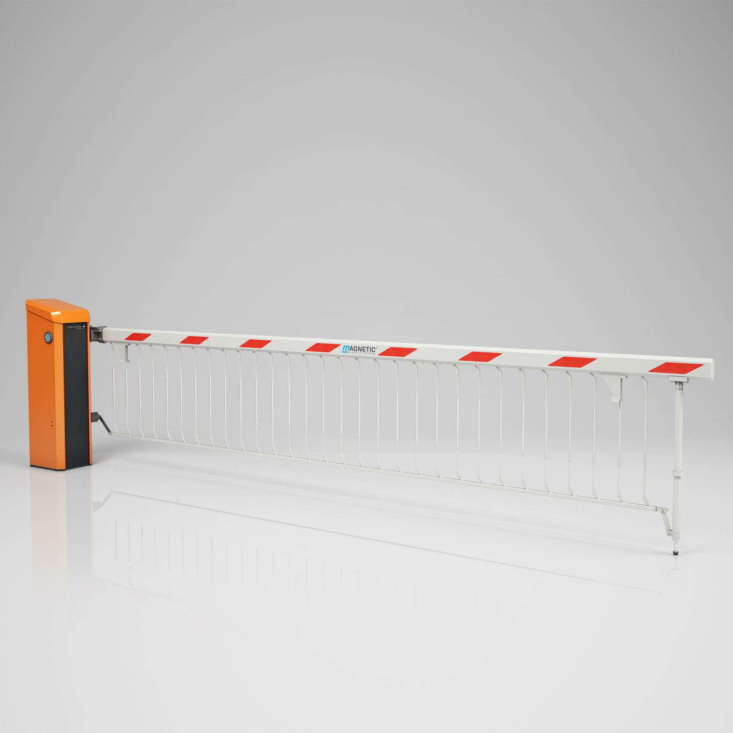 Для обеспечения быстрого открытия и закрытия стрелы шлагбаума без откоса и ударов автоматические шлагбаумы Magnetic оснащены простым, но в то же время надежным приводным устройством, состоящим из рычажной системы, пружинного механизма и электродвигателя. Продуманная рычажная система позволяет легко и быстро открывать/закрывать шлагбаум вручную в случае отключения электропитания. Встроенный в автоматические шлагбаумы пружинный механизм обеспечивает точный противовес стрелы. При этом все шлагбаумы Magnetic имеют заводскую настройку пружины в соответствии с длиной стрелы. В то же время регулировка противовеса может быть произведена и во время монтажа, например, когда на стрелу автоматического шлагбаума крепится дорожный знак или укорачивается сама стрела.