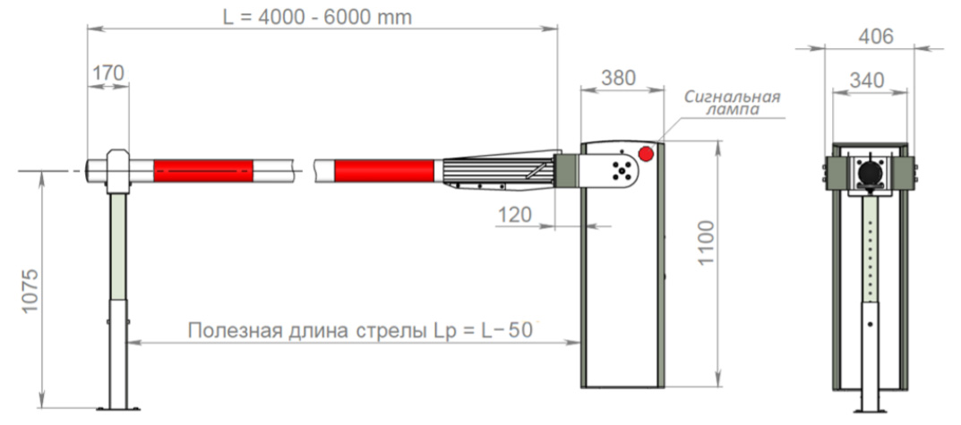 Тумба шлагбаума автоматического Пром-Стандарт-Арктик антивандального исполнения с повышенным ресурсом работы с обогревателем, приводом, блоком электроники, сигнальной лампой, пультом управления 1 кнопка.