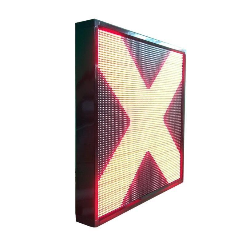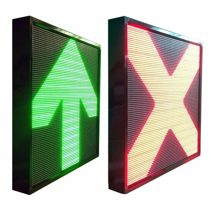В данном исполнении светофор отображает два изображения: красный крест и зелёную стрелку.
