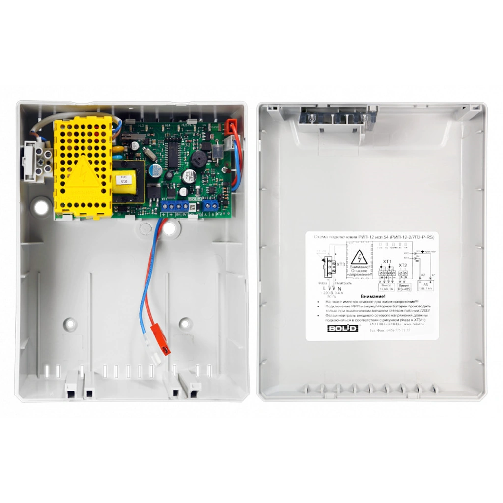 Резервированный источник питания РИП-12 исп.54 (РИП-12-2/7П2-Р-RS) предназначен для питания приборов пожарной автоматики, охранно-пожарной сигнализации, СКУД и другого оборудования, требующего стабильного напряжения 12 В постоянного тока. Устройство работает в круглосуточном режиме, обеспечивая автоматическое переключение на аккумулятор при отсутствии сетевого питания, а также контроль состояния и заряд батареи. Встроенные средства защиты предотвращают недопустимый разряд, перегрузки и короткие замыкания, восстанавливая работу после устранения неисправности.