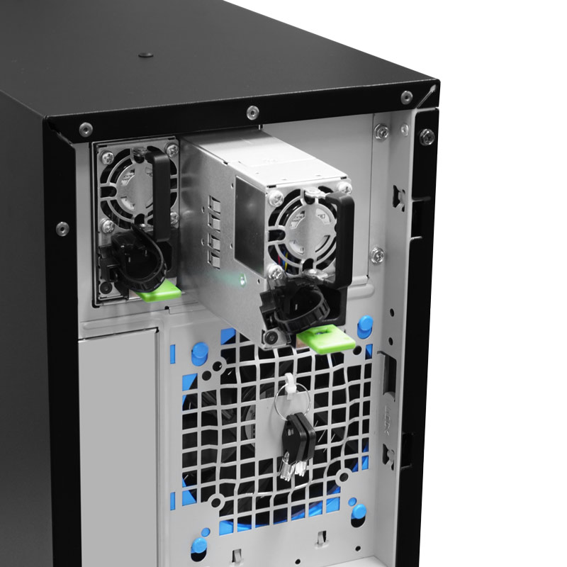 - Резервный блок питания (1+1) гарантирует непрерывную работу даже в случае отказа основных компонентов.