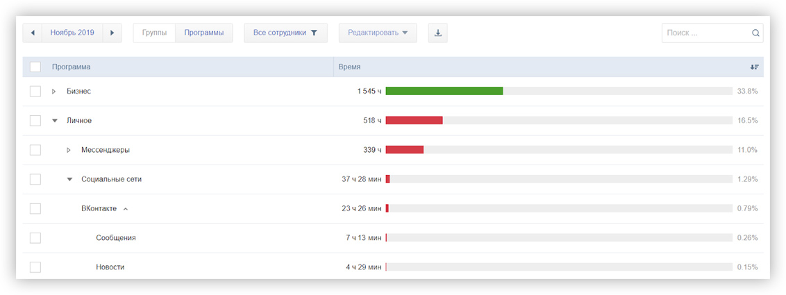 Контроль активности персонала