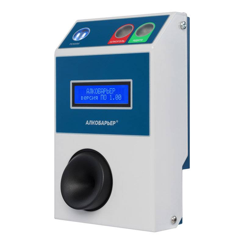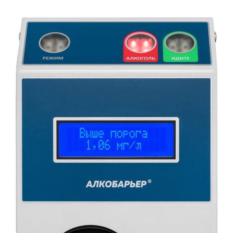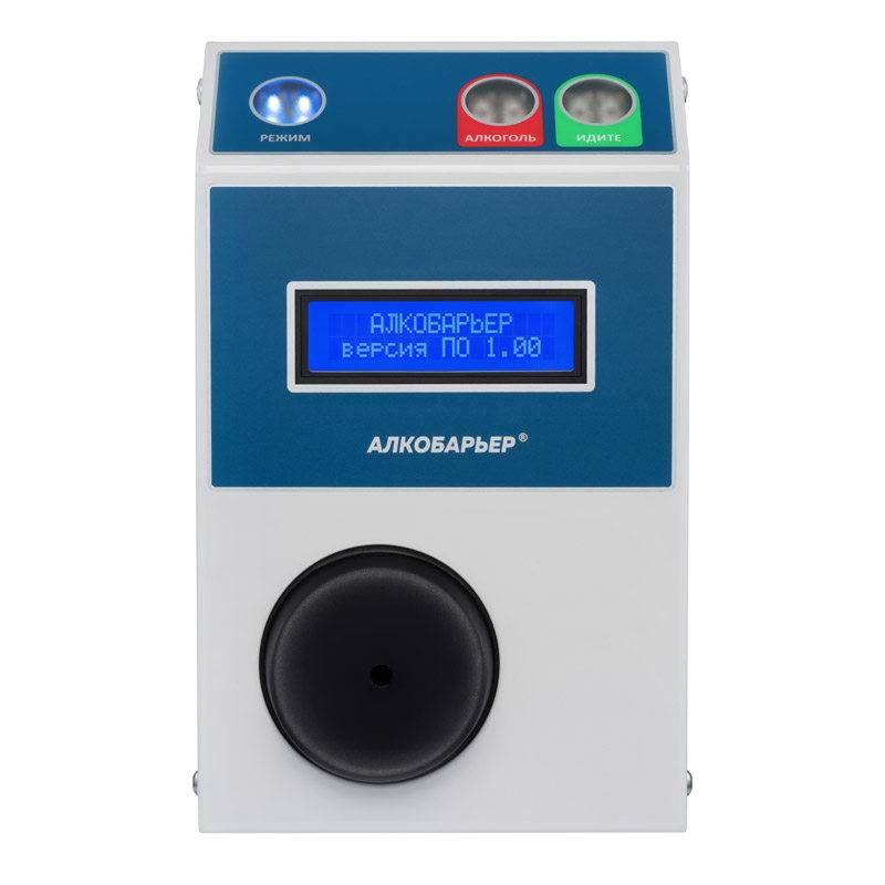 Алкобарьер – стационарный бесконтактный алкометр для СКУД (систем контроля доступом) и проходных. Разработан и производится российской компанией «АЛКОТЕКТОР».