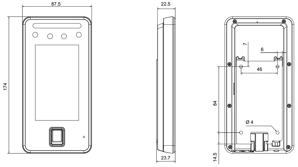 • Поддержка внешнего считывателя: 1 RS-485, 1 Wiegand