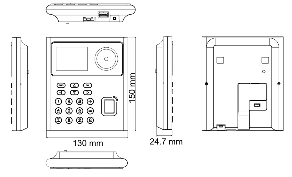• Макс. 500 изображений лиц, 1000 карт, 1000 отпечатков пальцев и 100000 событий
