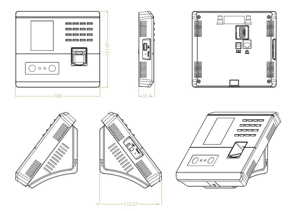 • Несколько методов проверки: лицо/отпечаток пальца/карта/пароль