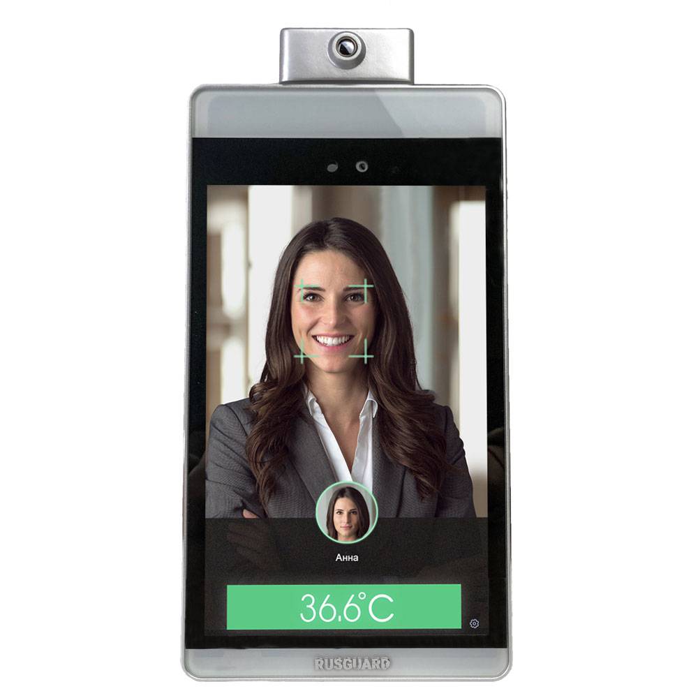 Терминал R20-Face Thermometer – это устройство для распознавания лиц и измерения температуры пользователей. Обеспечивает удобный и безопасный контроль доступа и исключает проход на объект лиц, имеющих повышенную температуру. Пользователю достаточно лишь на долю секунды посмотреть на дисплей терминала: лицо будет отсканировано, а термометр измерит температуру. Высокая скорость распознавания лица и измерения температуры (меньше 1 секунды) позволяет устанавливать терминал даже в точках доступа с большим трафиком, например, на проходных.