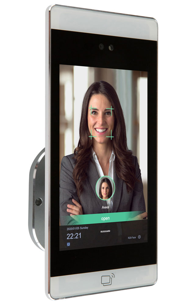 Терминал R20-Face (8W) – это устройство для распознавания лиц и идентификации пользователей в системе контроля доступа. Пользователю достаточно лишь на долю секунды посмотреть на дисплей терминала, и, при наличии соответствующих прав, доступ будет разрешен. Высокая скорость распознавания лица (меньше 1 секунды) позволяет устанавливать терминал даже в точках доступа с большим трафиком, например, на проходных.
