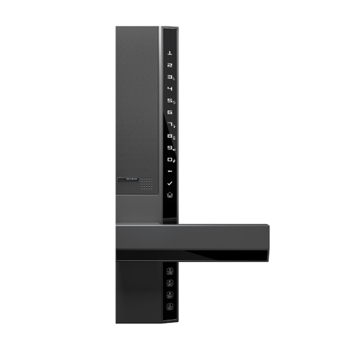 Замок Securam V8, является полностью электронный и имеет трехригельную стальную врезную систему.