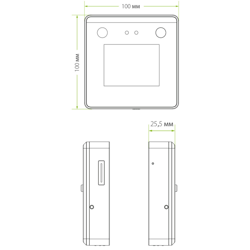 Особенности: распознавание на расстоянии 2 м и широкий угол идентификации: ±30° по всем осям относительно камеры терминала, антиспуфинговый алгоритм против поддельных идентификаций, 2,8-дюймовый сенсорный экран, регулируемая яркость экрана, компактный, простой в установке, настольная и настенная установка.