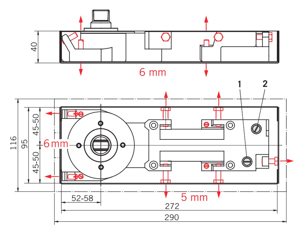 * Для особенно высоких или тяжелых дверей, наружных дверей, которые должны закрываться под действием сильного ветра, мы рекомендуем подбирать доводчик с усилием выше на единицу, чем требуется при данной ширине двери, либо выбирать модель dormakaba BTS 80.