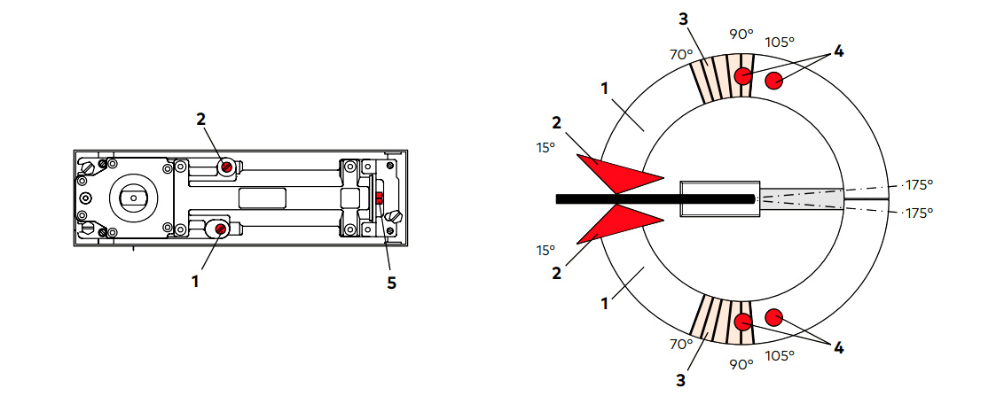 dormakaba BTS 75 V имеет два независимых диапазона регулировки скоростей закрывания 175° – 15° и 15° – 0°.