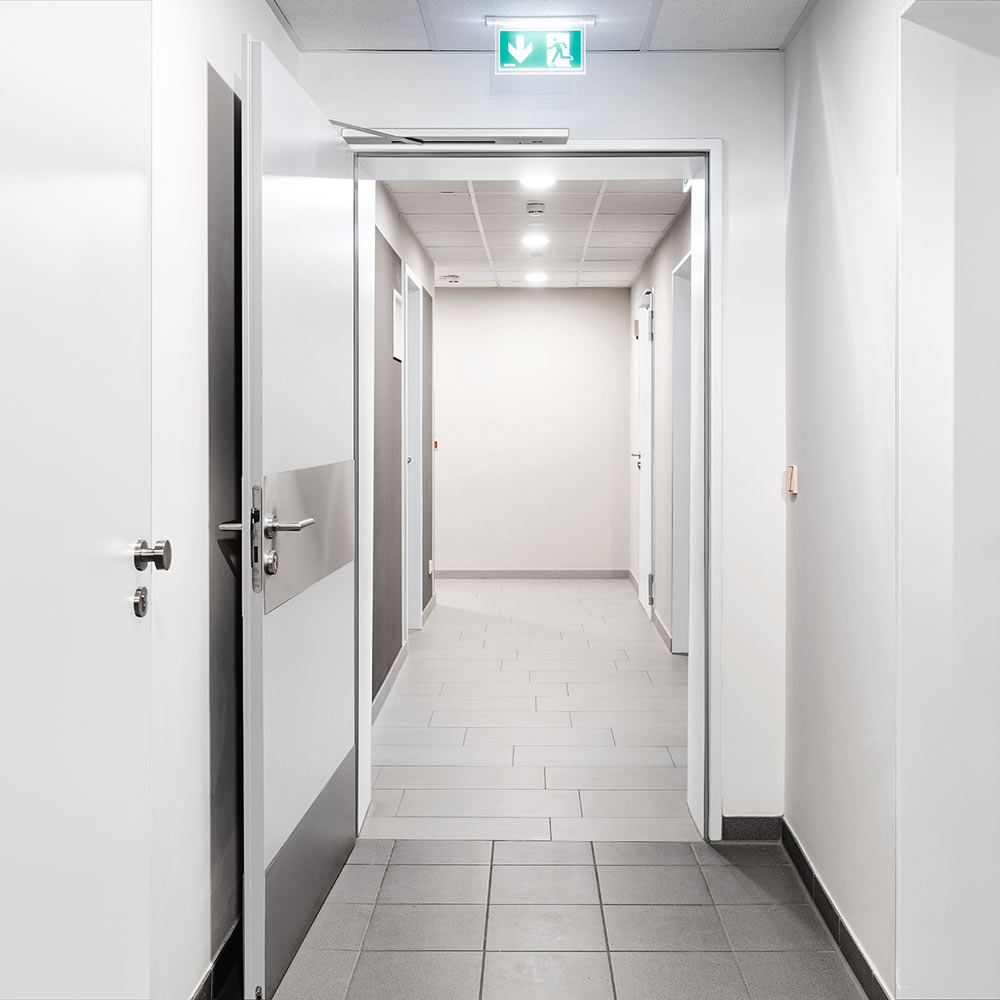 Электропитание от аккумуляторов обеспечивает не только простоту монтажа без необходимости прокладки кабелей и выполнения других строительных работ, но и высокую степень гибкости в процессе проектирования. Система дверных доводчиков G-Ubivis XEA dormakaba наиболее востребована при реконструкции зданий, нарушение исторического облика которых не допускается (например, в памятниках архитектуры). Кроме того, она идеально подходит для создания доступной среды (отвечает требованиям норм по безбарьерному строительству DIN 18040).