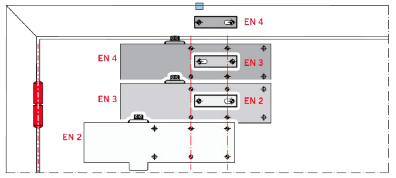 Усилие EN 2/3/4 настраивается путем простого смещения корпуса доводчика на двери без изменения существующих крепежных отверстий.