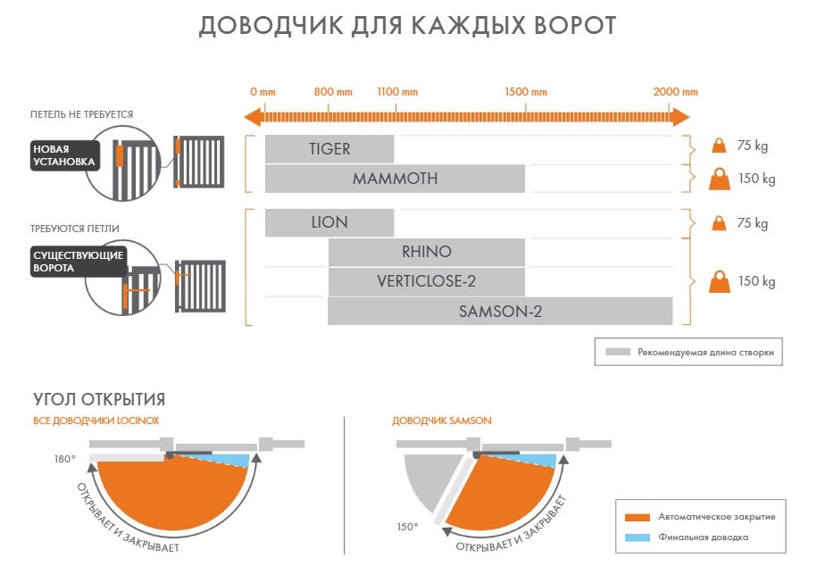 • Доводчик с регулируемыми скоростью и финальной доводкой