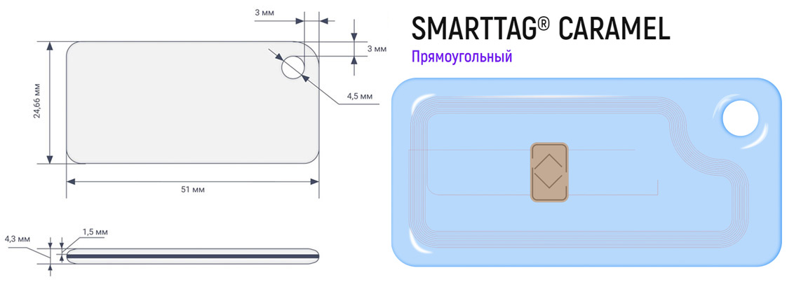 На прозрачный RFID-брелок SMARTTAG Caramel обычно не наносится никакой информации, ведь он уже выглядит оригинально. А за специальное отверстие брелок крепится к ключам, сумке или одежде. Потерять его будет сложно.