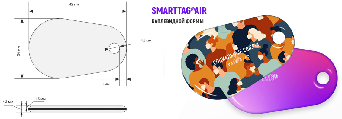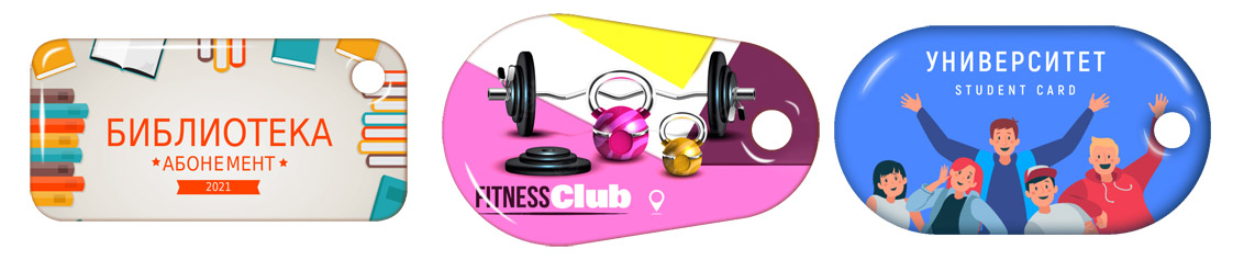Брелоки имеют миниатюрный размер, а также имеют удобное отверстие для ношения их на связке с ключами. В брелок могут быть имплантированы как один, так и два чипа различных характеристик. Брелоки производятся с печатью вашего дизайн-макета и персонализацией.RFID-брелоки производятся в нескольких форм-факторах: прямоугольной, овальной, каплевидной и мини.Основные функции