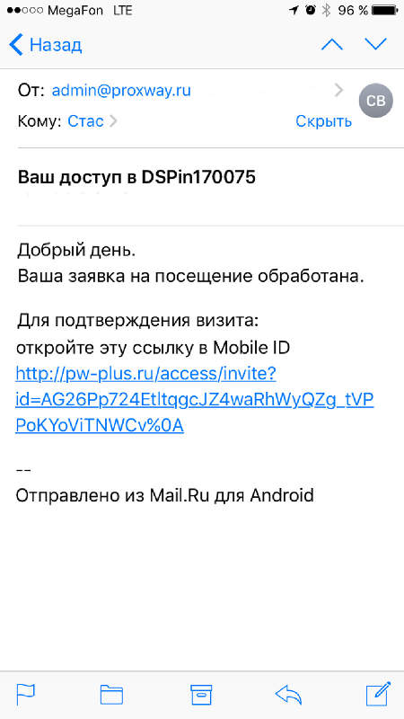 После выполнения этих шагов, Вам будет предоставлен доступ с использованием мобильного идентификатора ProxWay Mobile ID.