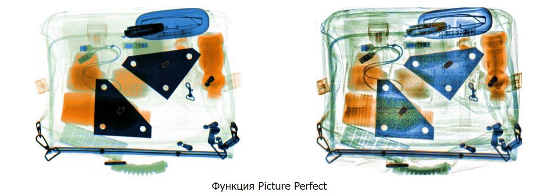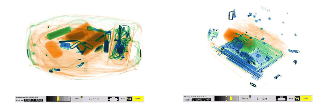 Другой отличительной особенностью установок Astrophysics является формирование изображения досматриваемых объектов в формате 6-ти цветов (в зависимости от атомного номера вещества), что существенно облегчает работу оператора по идентификации опасных материалов.