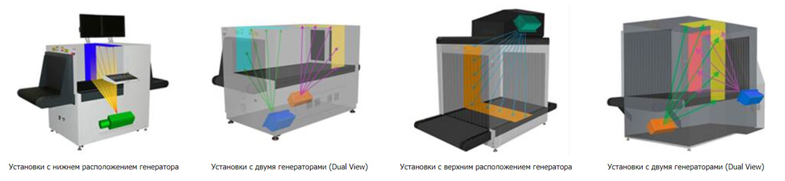 В рентгенотелевизионных системах с одним ракурсом используется один генератор, луч из которого направлен либо вниз, либо вверх, при этом создается одно изображение досматриваемого объекта.