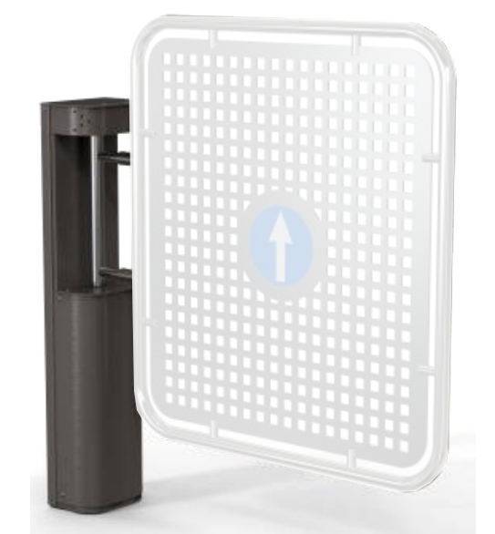 Калитка двухсторонняя, при этом может работать и как односторонняя. Открывается как по часовой стрелке, так и против в зависимости от подаваемой команды. При заказе односторонней калитки на вставке дуги с одной стороны изображен знак разрешения (стрелка), с другой стороны - знак запрета ("кирпич") прохода. Правосторонняя калитка открывается по часовой стрелке при виде сверху (стойка калитки при проходе остается справа), левосторонняя калитка открывается против часовой стрелки при виде сверху (стойка калитки при проходе остается слева).