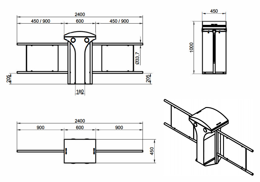 • Электронный блок управления турникетом защищен от воды при наружной установке.