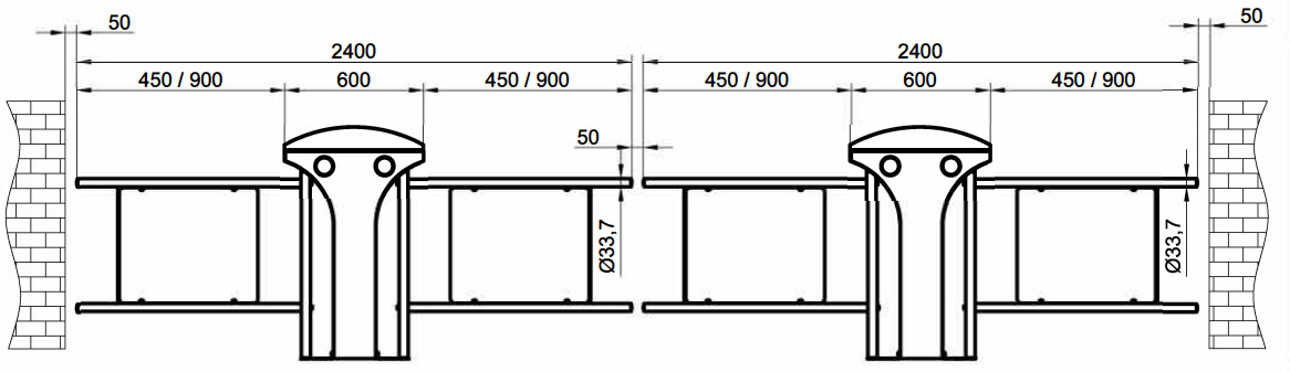 • Сигнализация обеспечивается указателями, расположенными по обе стороны от верхней части турникета (стрелка указывает направление активного прохода, красный крест показывает что проход заблокирован). В дополнение к визуальной сигнализации, во время прохода может подаваться звуковой сигнал.