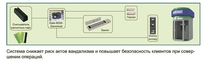 Типовой состав оборудования для организации системы ограничения доступа в помещение банкомата: