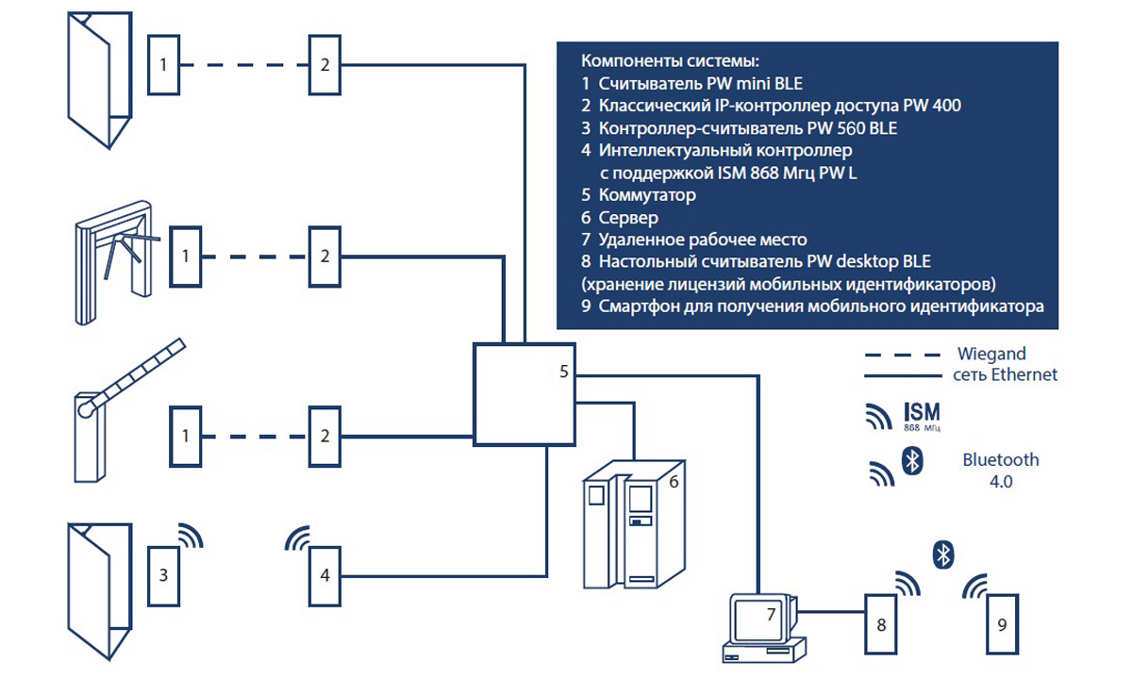 Прекрасно подходит для работы как считыватель в сетевом режиме в составе СКУД PW Web.
