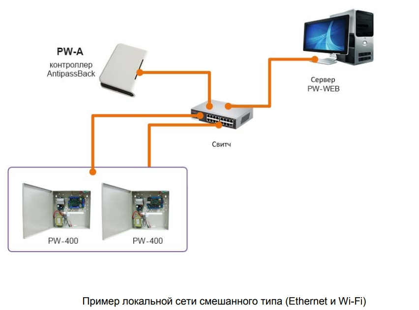 Контроллер ProxWay PW-A может быть подключен к компьютерной сети с помощью проводного соединения (Ethernet).