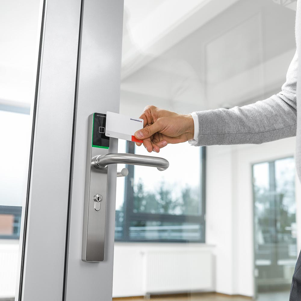 Фурнитура c-lever pro может использоваться как автономное устройство контролирующее точку прохода в зависимости от прав доступа пользователя и времени суток, так и быть частью распределенного сетевого решения с централизованным управлением по беспроводному каналу с полноценным функционалом “классической” проводной СКУД. Во втором варианте администратор получает возможность максимально оперативного изменения прав доступа пользователей системы, а в случае использования смартфона, в качестве идентификатора для доступа, появляется возможность оперативного редактирования полномочий для прохода и через автономные (офлайн) фитинги.