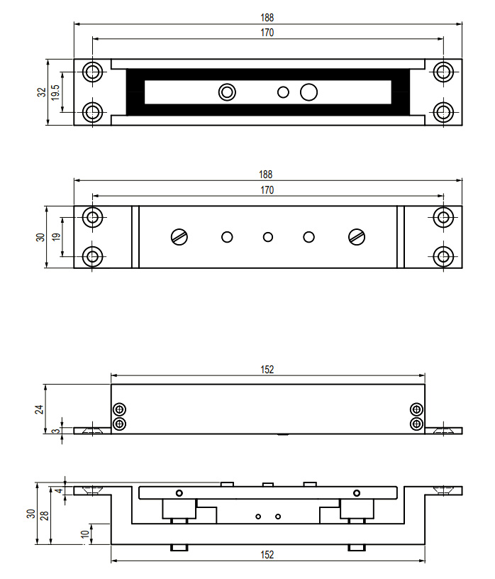 • Размеры корпуса магнита: 152 Д x 32 Ш x 24 В мм