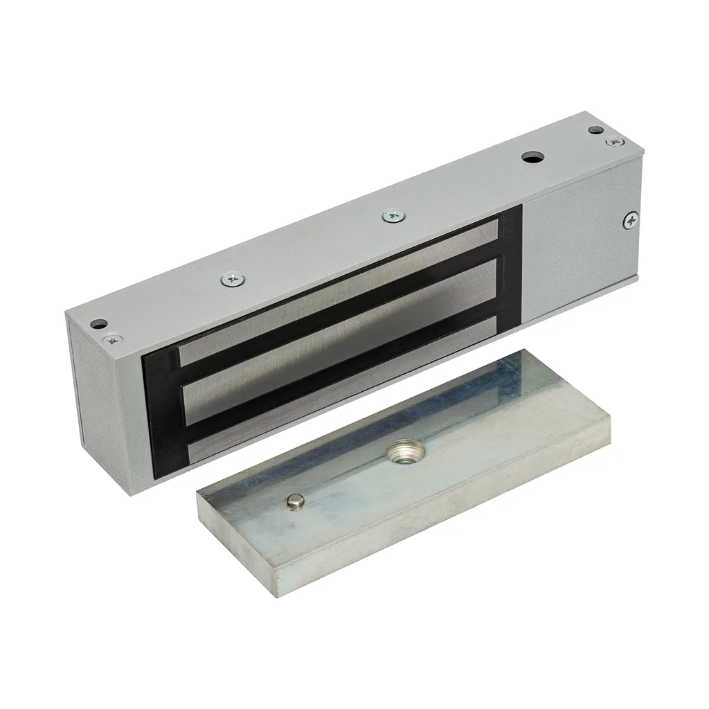 Замок обеспечивает удерживающее усилие 600 кг, что гарантирует высокий уровень безопасности и надежность фиксации дверей. Механический компенсатор остаточной намагниченности предотвращает зависание якоря и повышает стабильность работы. Устройство поставляется с уголком для удобного накладного монтажа и легко интегрируется в СКУД, обеспечивая защиту жилых и коммерческих объектов. Размер отсека под электронику 52×63×36 мм позволяет гибко дополнять систему необходимыми модулями.