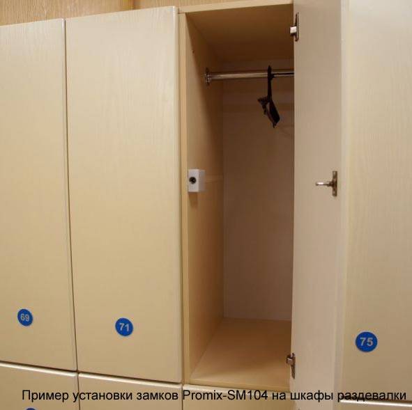 Замки электромеханические серии Promix-SM104 с шариковым механизмом запирания и встроенным толкателем (в дальнейшем - замки) предназначены для ограничения доступа в торговую и офисную мебель, ячейки камер хранения, шкафы, лари, различного рода ящики и иное оборудование, с возможностью их дистанционного открывания подачей или снятием (зависит от исполнения) напряжения питания постоянного тока с помощью выключателей (кнопок) или контроллеров систем контроля и управления доступом, аудио- и видеодомофонов, кодовых панелей и других устройств. Замок позволяет не устанавливать на дверь ручку, т.к. при открытии замка дверь «приоткрывается» сама.
