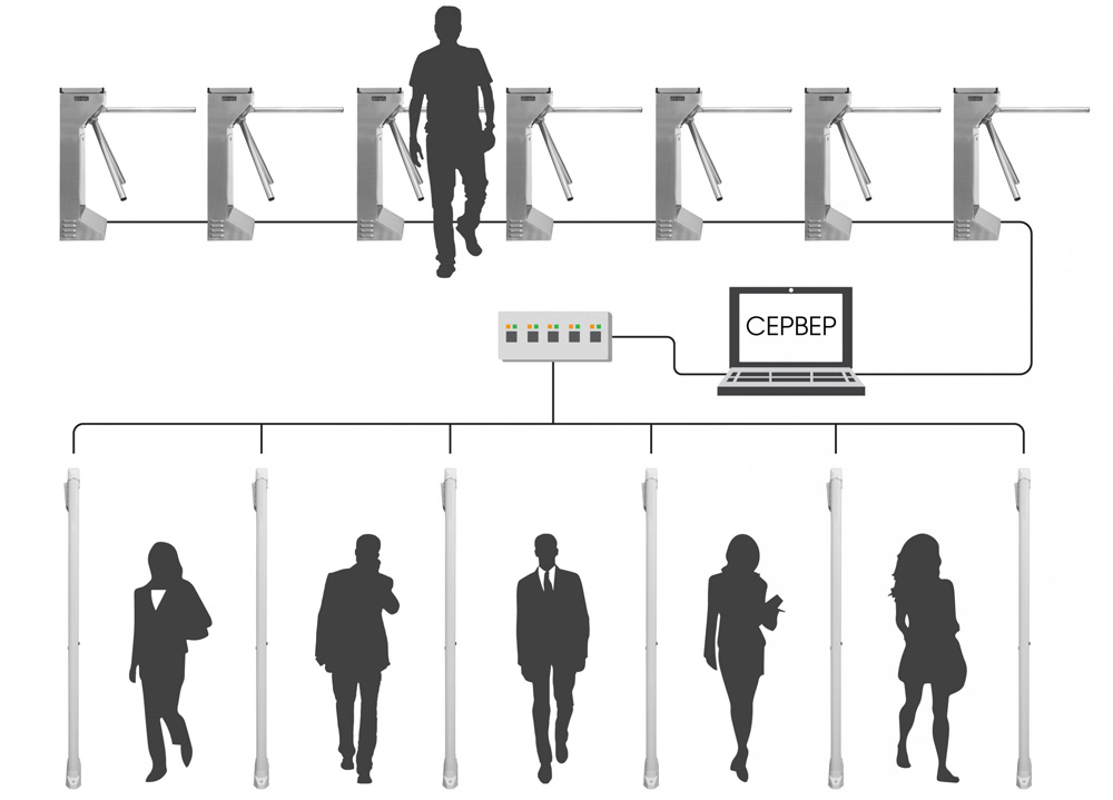 • мониторинг проходов через ПК. Вы можете отслеживать количество проходов через каждый детектор для сбора данных и их последующей обработки;