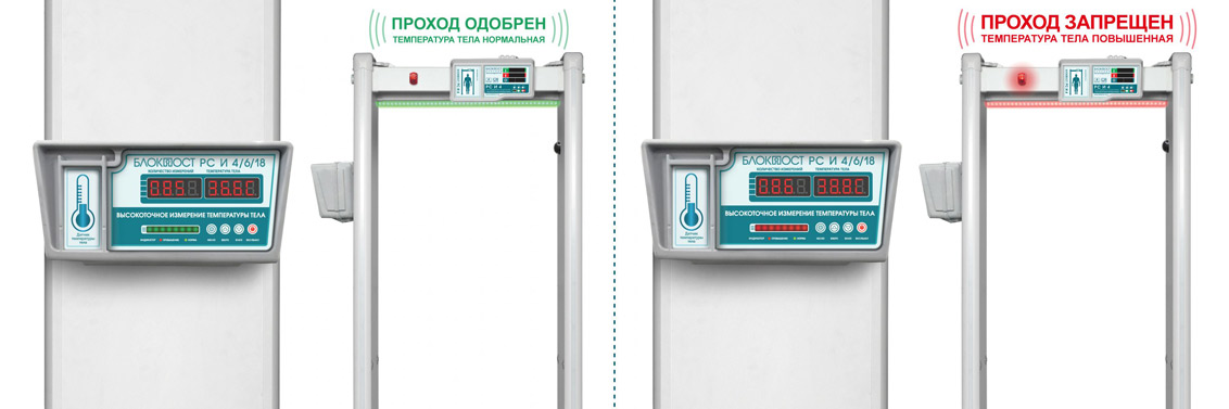 Компания «БЛОКПОСТ» представляет новую модель арочного металлодетектора – БЛОКПОСТ РС И 6 с бесконтактным, высокоточным пирометром. Этот металлодетектор предназначен не только для выявления запрещенных к проносу металлических изделий, но и для измерения температуры тела входящего в рамку человека. Досмотр проходит в потоковом режиме с выдачей сигнала тревоги при превышении установленного предельного значения.