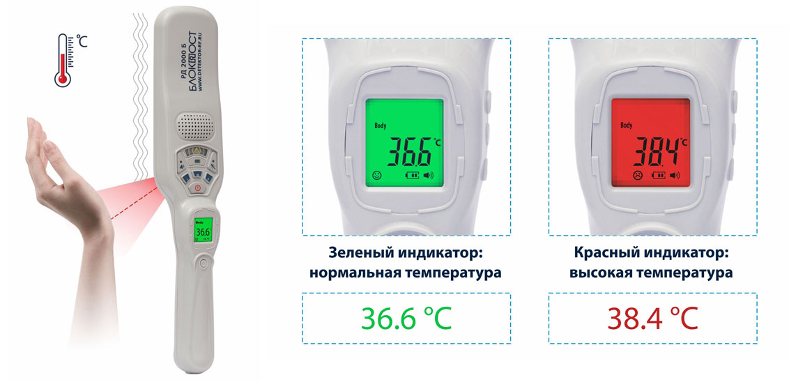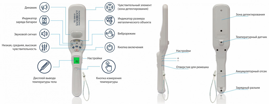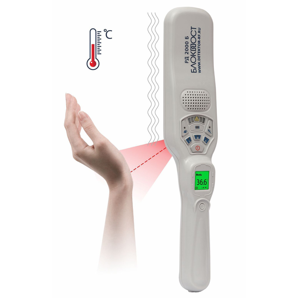 Ручной металлодетектор с датчиком для измерения температуры тела – новейшая разработка для обеспечения комплексной безопасности в условиях пандемии. Модель БЛОКПОСТ РД 2000 Б предназначена для локального обнаружения запрещенных к проносу предметов и для измерения температуры человека.