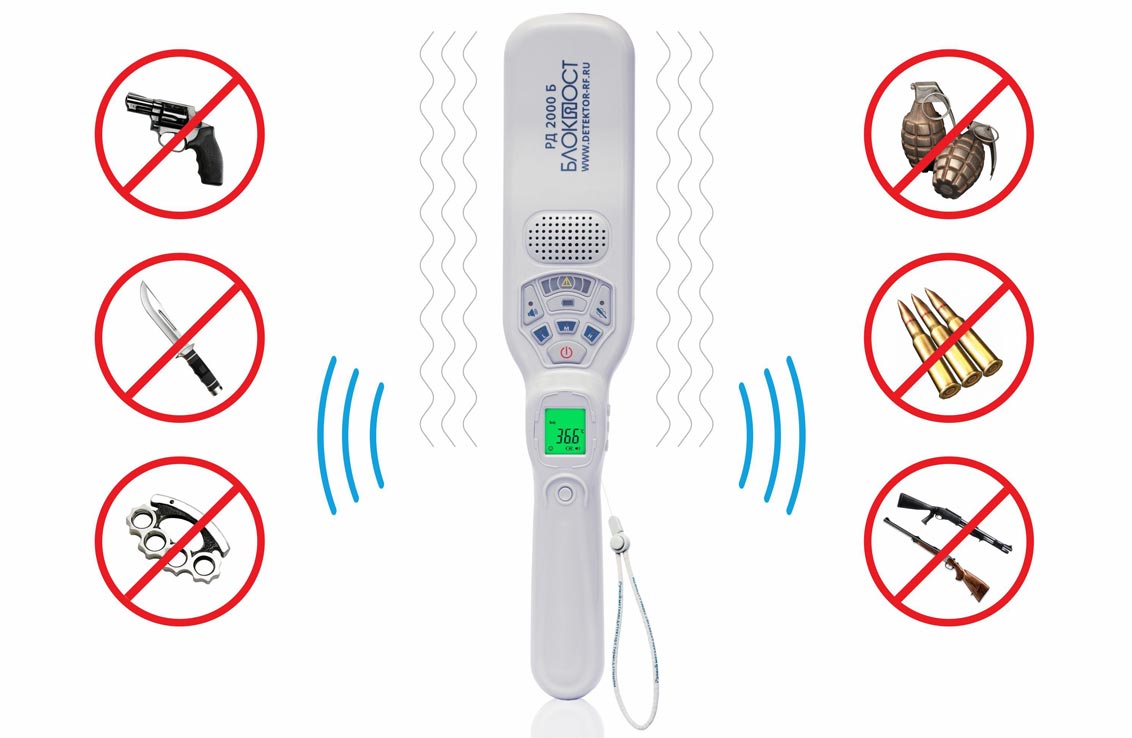 Ручной металлодетектор РД 2000 Б обнаруживает предметы, содержащие или целиком изготовленные из магнитного и не магнитного металла, которые размещены в одежде и на теле человека.