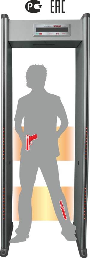 • Количество зон индикации обнаруженных металлических предметов: 6 зон индикации по высоте прохода.
