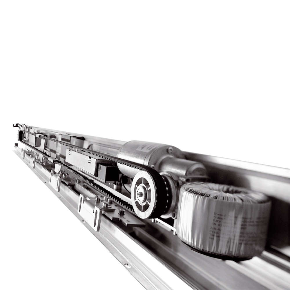 Привод ES 200 Easy поставляется в виде отдельных блоков, либо в собранном виде, либо уже интегрированный в любую систему раздвижных дверей dormakaba.