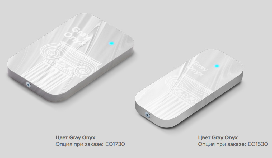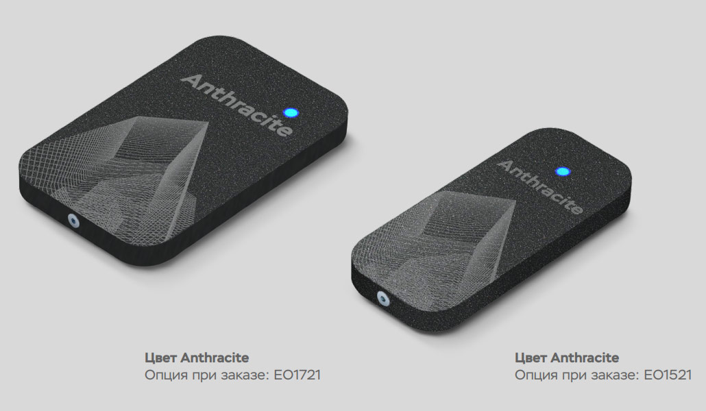 Мультиформатный считыватель в темно-сером корпусе Anthracite из искусственного камня Corian, с индивидуальной гравировкой и базовой конфигурацией.